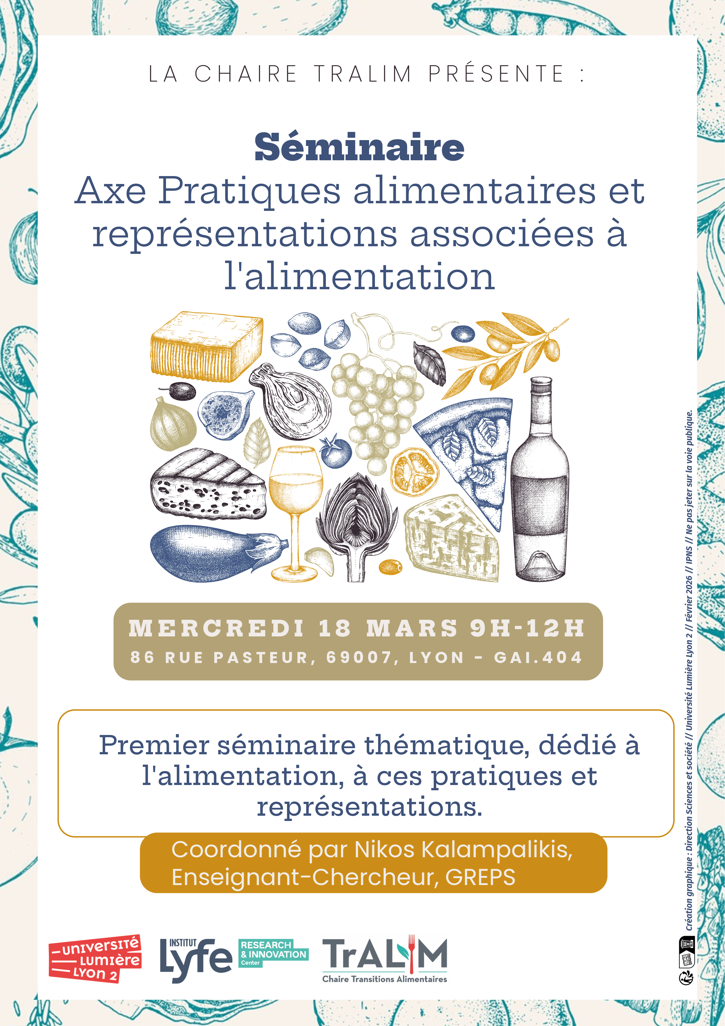 La Chaire lance son tout premier séminaire thématique, dédié aux pratiques alimentaires et aux représentations qui les accompagnent, sous la coordination de Nikos Kalampalikis. Rendez-vous le mercredi 18 mars de 9h à 12h pour un temps d'échange et de réflexion.